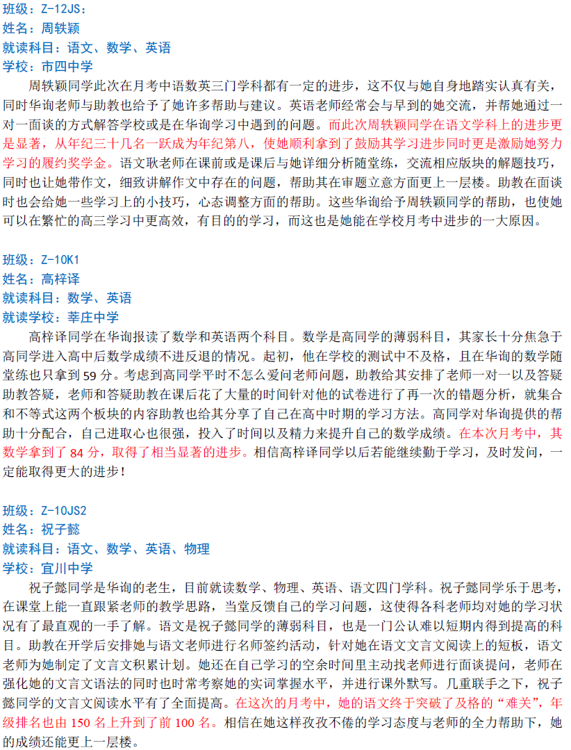 华询教育阶段成绩展--第一次月考(中科篇)